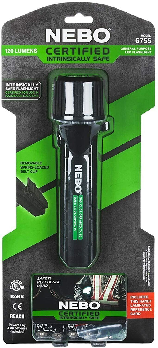 NEBO Intrinsically Safe All Purpose LED Flashlight Safety Rated 120 Lumens 6755