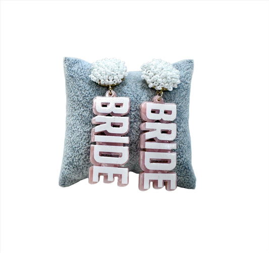 BRIDE BEAD POM EARRING