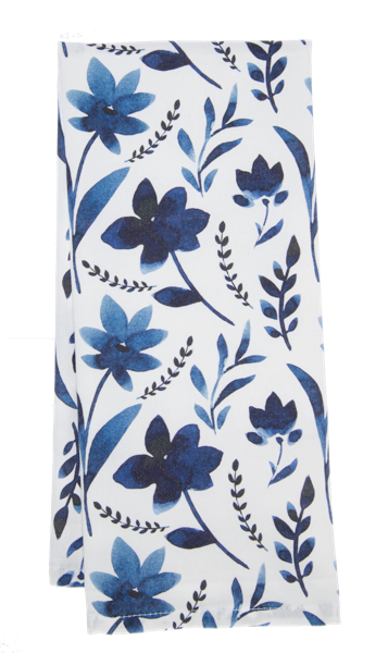 Blue & White Watercolor Floral Tea Towel
