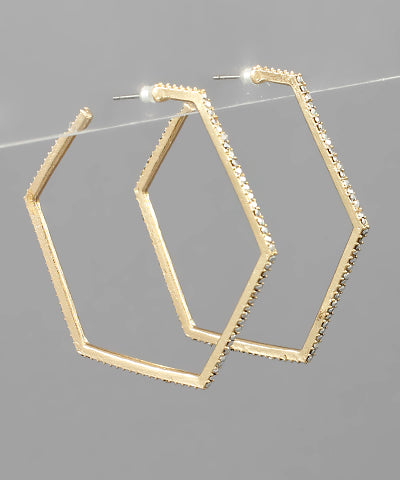 PAVE HEXAGON OPEN HOOPS